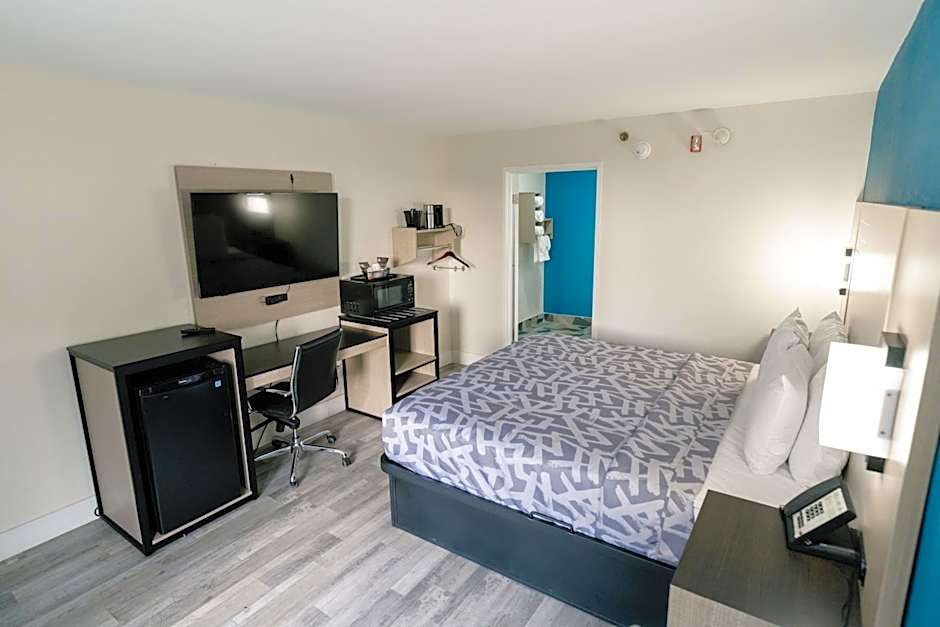 This accessible room offers a flat-screen cable TV, work desk and coffee maker. Accessible amenities include wider doorways and an adapted bathroom.